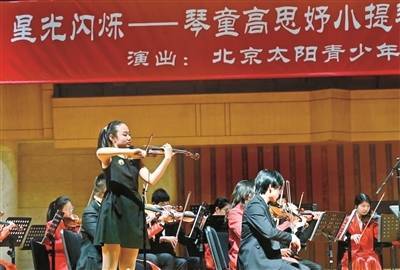 r2月1日,中山公园音乐堂举行了一场“星光闪烁——琴童高思妤小提琴与乐队交响音乐会”。12岁的高思妤作为整场音乐会的小提琴独奏,与蒋雄达指挥的北京太阳青少年乐团合作演出。89岁高龄的音乐教育家蒋雄达先生是小演奏家的老师,也是本场音乐会的组织者、指挥、讲解者,同样是这场音乐会的核心人物。