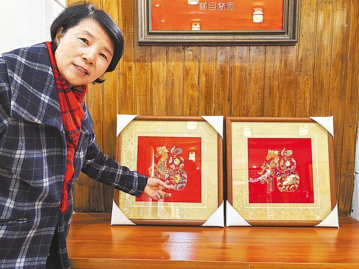 2月10日下午,位于武汉市江汉区新华路的王子怡汉绣工作室里,两幅装裱好的汉绣作品《龙马精神》,正等待被顾客取走。